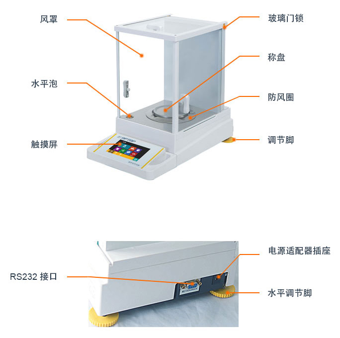 上海舜宇恒平AE223C/AE323C/AE523C觸摸式彩屏內部校準電子天平